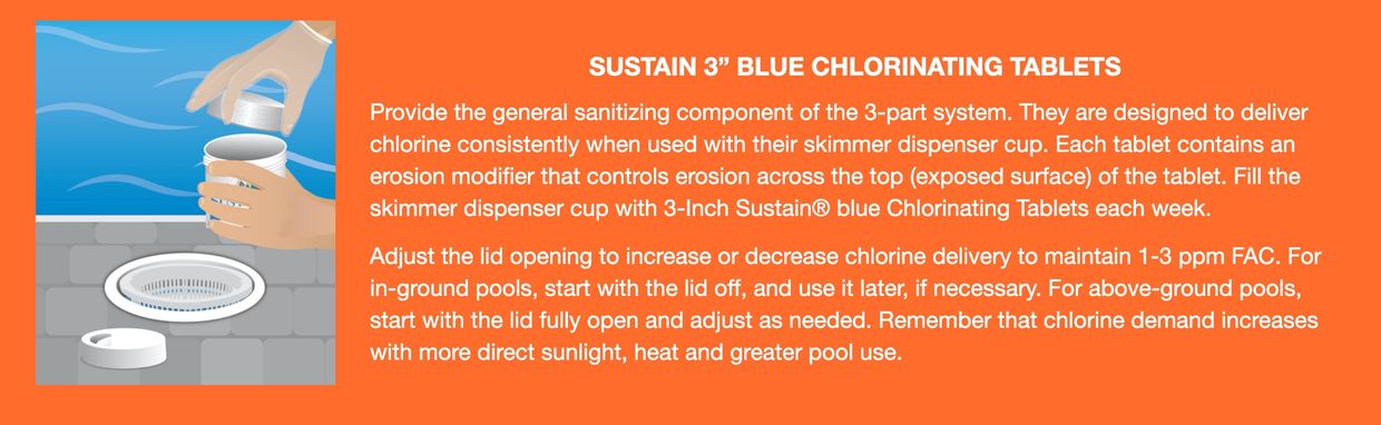 Sustain 3-Inch blue Chlorinating Tablets serve to provide the general sanitizing protection customers need all week long.